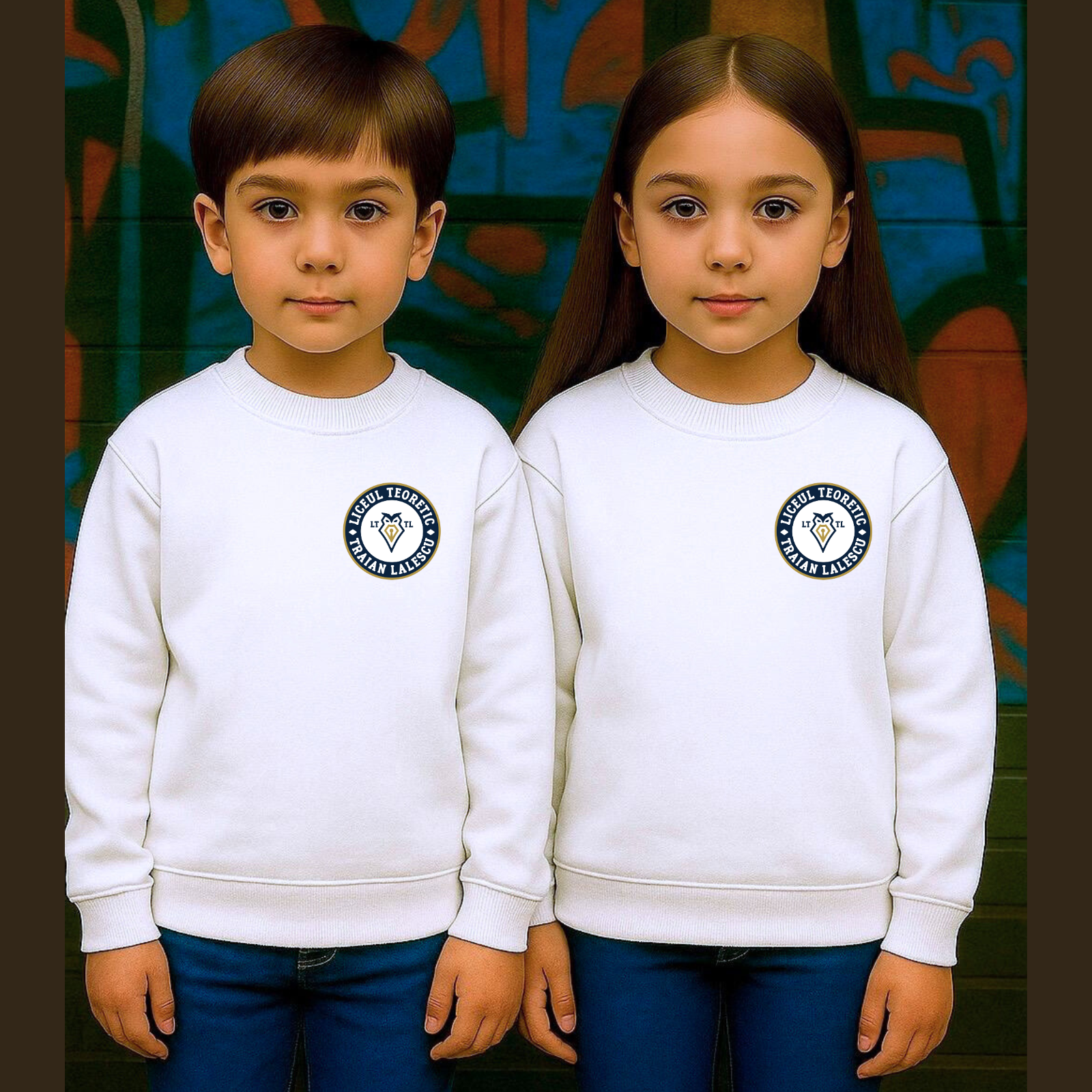 Pulover Pentru Copii Cu Imprimeu, Liceul Traian Lalescu, Alb